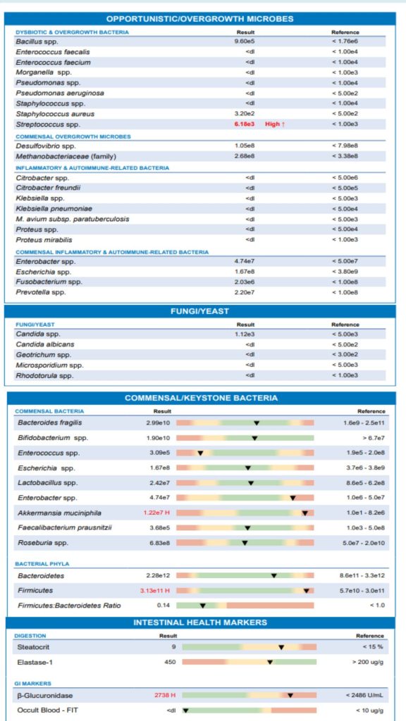 Testillä saadaan tietoa esimerkiksi suoliston bakteerikannasta, hiivoista, parasiiteista, viruksista, ruoansulatuksesta, haiman toiminnasta, gluteiiniyliherkkyydestä, suolen seinämän immunologisesta toiminnasta, tulehduksesta, ruoka-aineiden vasta-aineista (nostaako jokin nykyisessä ruokavaliossa vasta-aineita) ja mahdollisesta hormoniylijäämästä (viittaus hormonaalisen ongelmaan).